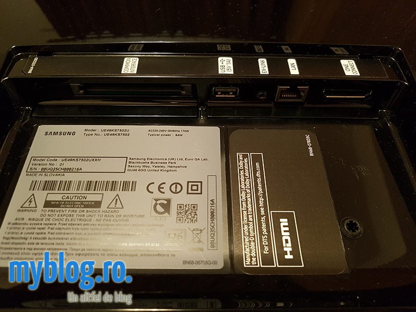 Televizorul Samsung 49KS7502 nu numai ca este frumos si elegant, dar este si extrem de versatil si dotat cand vine vorba de conexiuni. Pe spatele televizorului gasim doar cateva porturi: slotul CI+, un port USB, un EX-Link, portul Ethernet si portul pentru interfata One Connect.
