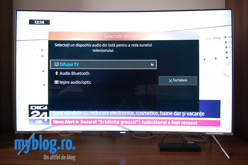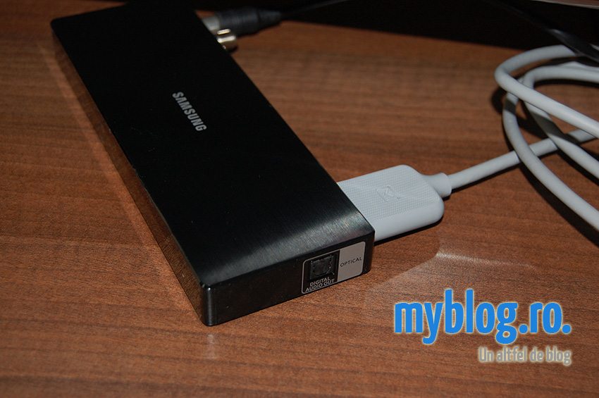 Partea buna este ca se pot conecta sisteme dedicate de sunet, atat prin iesirea optica digitala, cat si prin Bluetooth prin care se pot conecta chiar si o pereche de casti wireless.