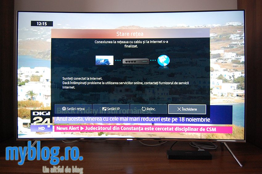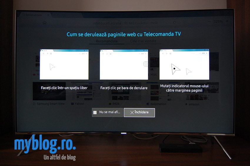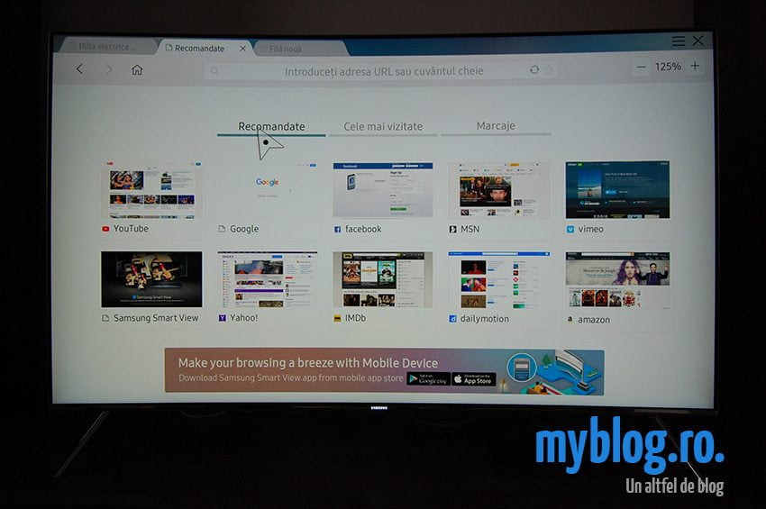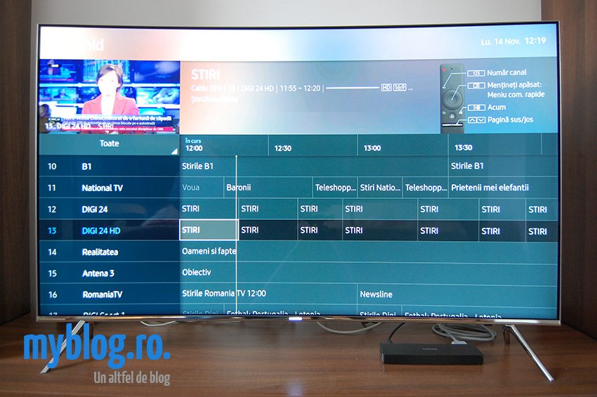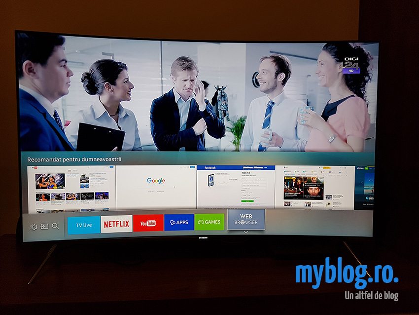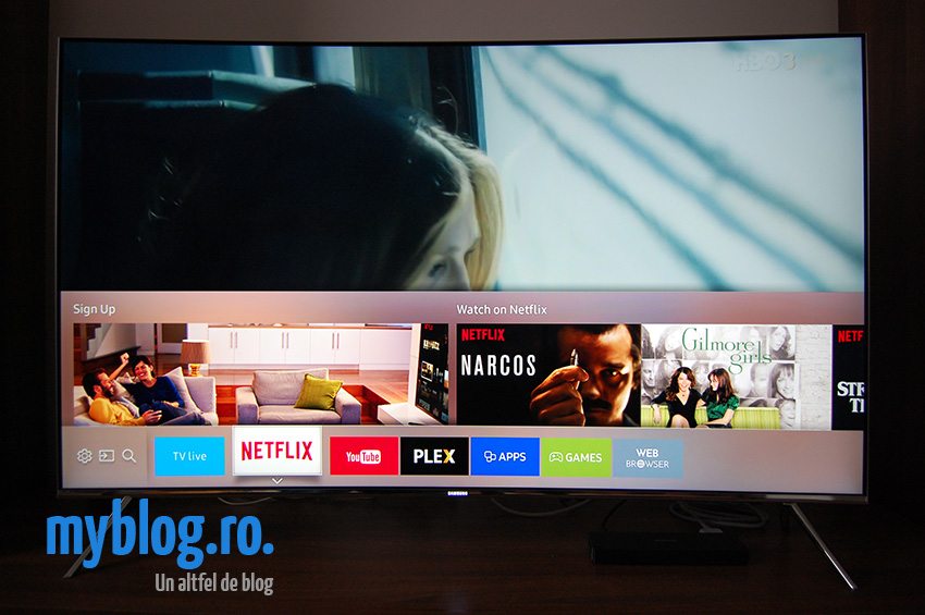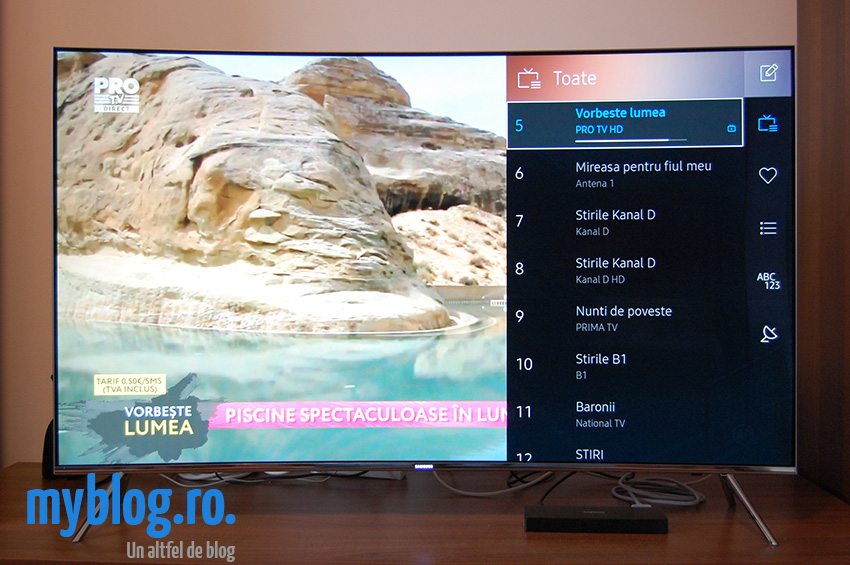 Interfata Smart TV Tizen este rapida si raspunde instant la comenzi. Totul este gandit si optimizat pentru acces usor la orice functie sau meniu. Pe langa ecranul excelent Samsung 49KS7502 ofera o experienta de utilizare foarte facila si rapida, fiind unul dintre cele mai usor de folosit televizoare ale anului 2016. Singurul neajuns este partea de recunoastere vocala a telecomenzii care nu recunoaste comenzile in limba romana, fiind setata pe limba engleza, desi interfata televizorului este in romana pentru Romania. Probabil se va rezolva intr-un update viitor.