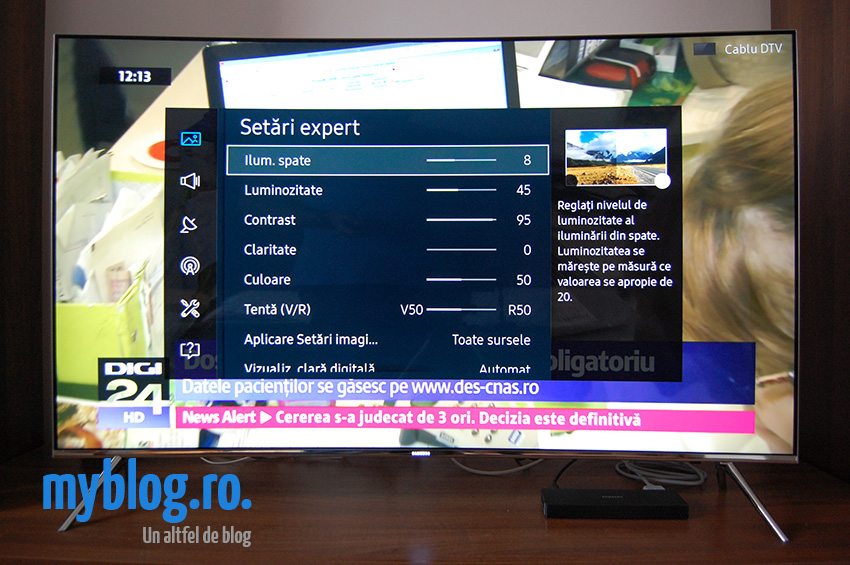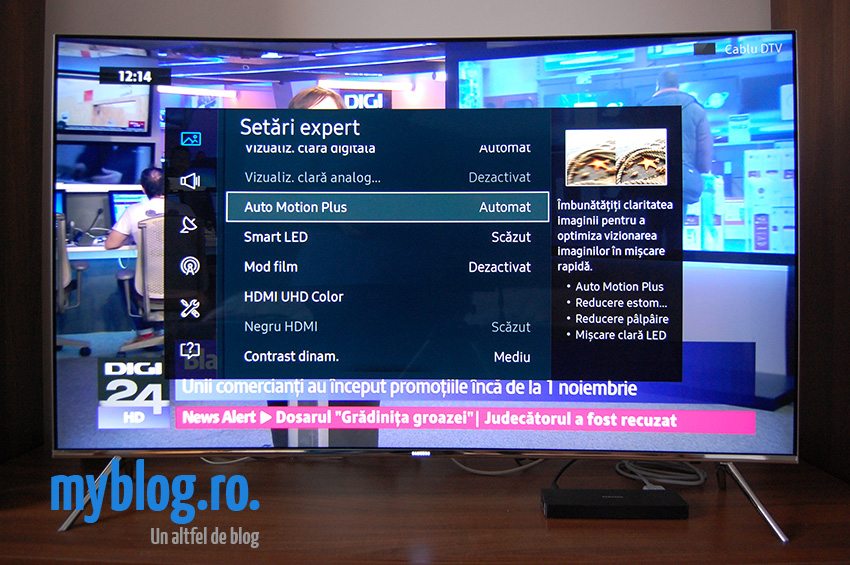 Aspectul fin si delicat se datoreaza si faptului ca majoritatea porturilor de conexiune nu se afla pe televizor ci in dispozitivul One Connect care se livreaza in pachet. Vom vorbi despre acesta mai jos.